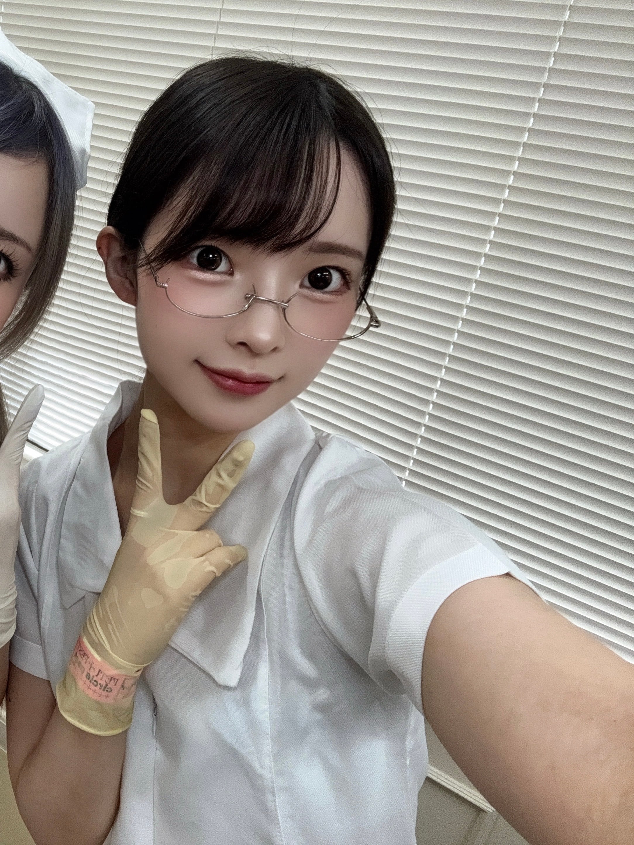 フェチフェスで着用したナース服×眼鏡×グローブ衣装のランチェキです。落書きして送ります◎